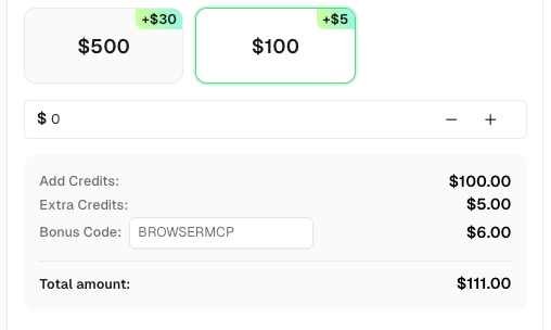 💡 Bonus Tip for BrowserMCP Users: Use the promo code BROWSERMCP when recharging your CapSolver account and get an extra 6% credit. No limits, no expiration—just free bonus credits to keep your automations running.