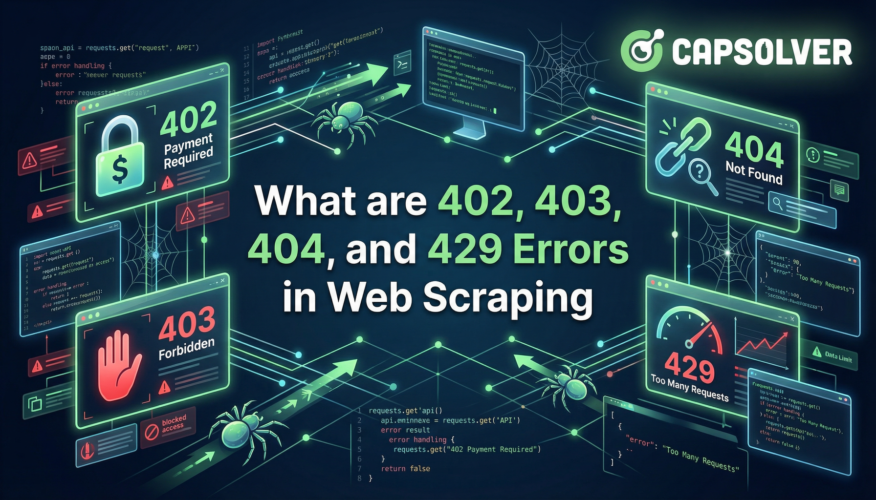 Master web scraping error handling by understanding what are 402, 403, 404, and 429 errors. Learn how to fix 403 Forbidden, implement rate limiting error 429 solutions, and handle the emerging 402 Payment Required status code.