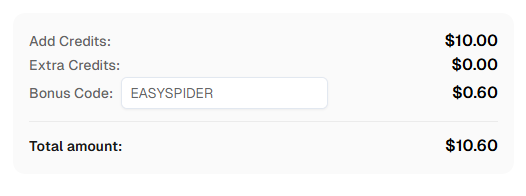 Ready to get started? Sign up for CapSolver and use bonus code EASYSPIDER for an extra 6% bonus on your first recharge!