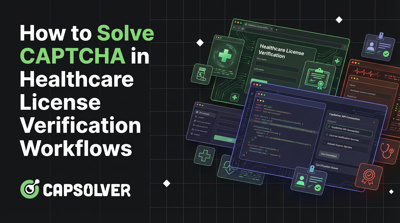 Stop CAPTCHA from blocking your compliance. Learn how to automate license verification workflows in healthcare using AI-powered CAPTCHA solving for reCAPTCHA and AWS WAF.