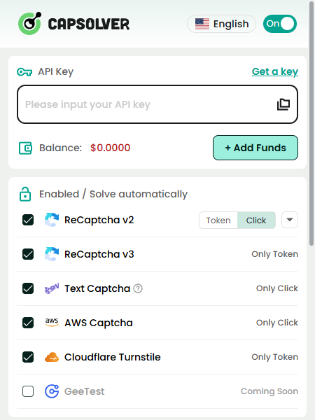 The simplest integration approach is running both extensions simultaneously. The CapSolver extension automatically detects and solves CAPTCHAs on any page your Nanobrowser agent visits.