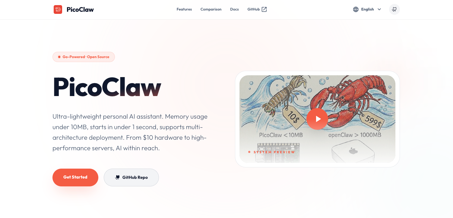 PicoClaw's tagline says it all: $10 Hardware. 10MB RAM. 1s Boot.