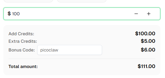 CapSolver offers competitive pricing based on CAPTCHA type and volume. Visit capsolver.com for current pricing. Use bonus code PICOCLAW for an extra 6% on your first recharge.
