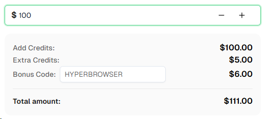 ¿Listo para comenzar? Regístrese en CapSolver y use el código de bonificación HYPERBROWSER para obtener un 6% adicional en su primer recarga!