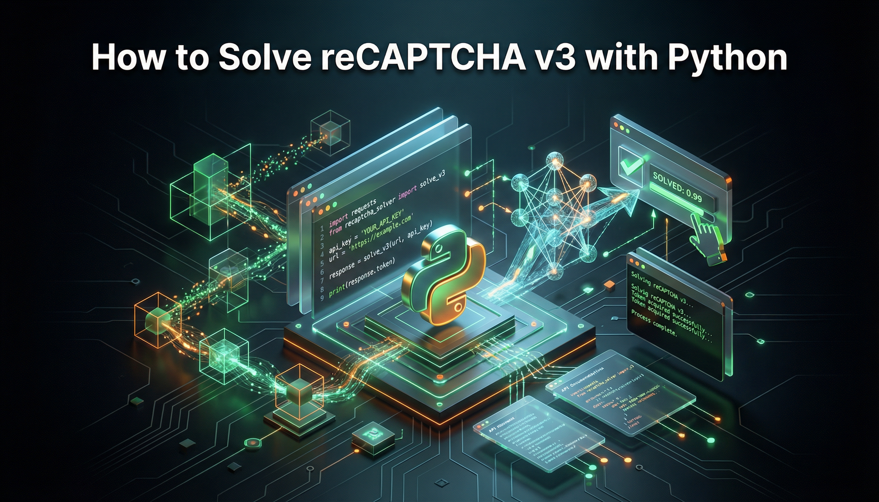 reCAPTCHA v3 Enterprise पायथन गाइड के साथ उच्च-स्कोर तकनीकें, प्रॉक्सी विकल्प और कैपसॉल्वर इंटीग्रेशन के साथ स्थिर 0.7-0.9 परिणाम।