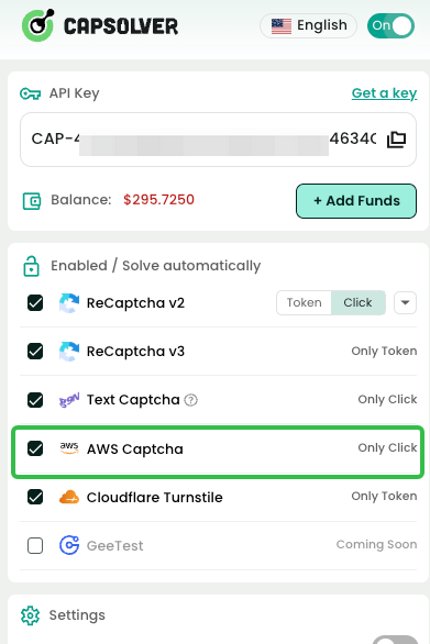 CapSolver拡張機能の開始は簡単なプロセスです。まず、CapSolverダッシュボードにアクセスしてアカウントを作成し、ユニークなAPIキーを取得してください。このキーは、拡張機能がAIソルバーのバックエンドと通信するために必要です。