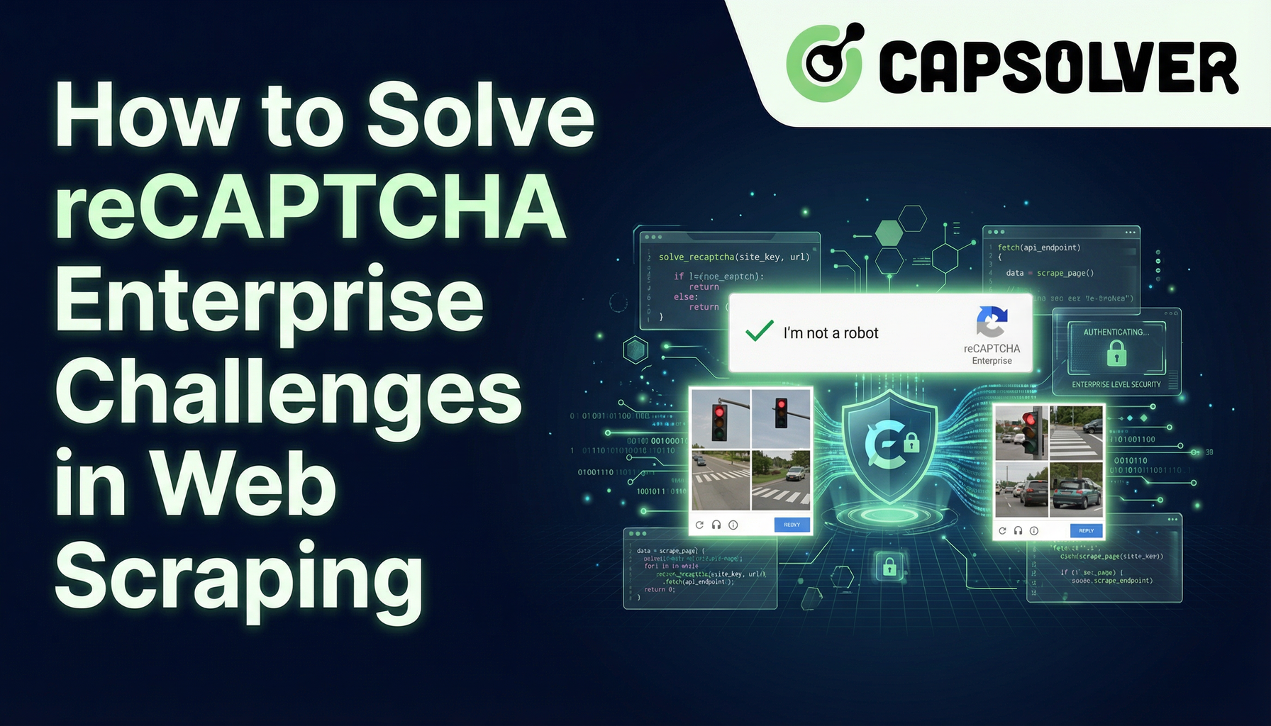 A reCAPTCHA Enterprise é o sistema de segurança avançado da Google baseado em pontuação, projetado para detectar e bloquear tráfego automatizado, tornando-o particularmente desafiador para projetos de raspagem de web. Ao contrário dos CAPTCHAs tradicionais, ela avalia o comportamento do usuário e atribui uma pontuação de risco. Este guia explica como a reCAPTCHA v3 Enterprise funciona, como identificá-la por meio do script enterprise.js e como integrar ferramentas como CapSolver, opcionalmente com proxies, para obter tokens válidos de forma confiável e manter fluxos de raspagem eficientes e escaláveis.