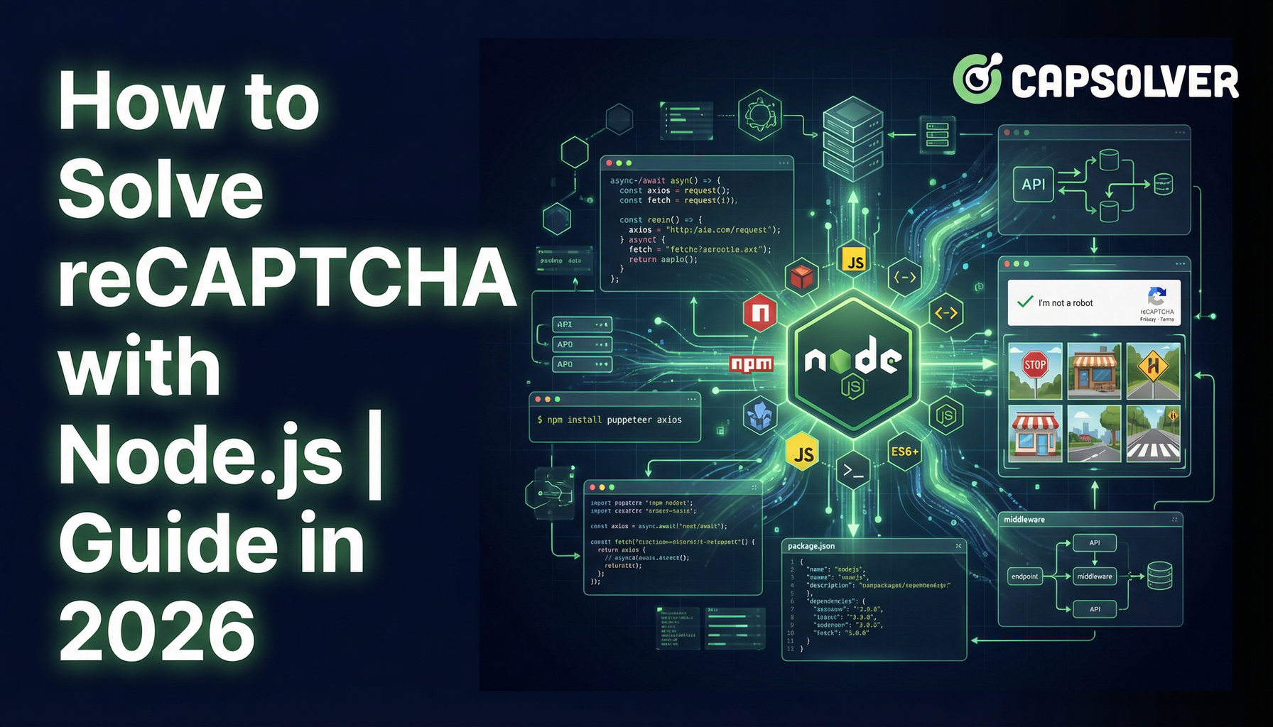 Já se sentiu preso tentando provar a um site que você não é um robô? Todos já passamos por isso. O reCAPTCHA, criado para diferenciar humanos de robôs, é um obstáculo comum para entusiastas de automação. Mas não se preocupe! Com Node.js e CapSolver, você pode resolver desafios de reCAPTCHA de forma eficiente. Vamos mergulhar neste guia de 2026 sobre como automatizar a resolução do reCAPTCHA com Node.js.