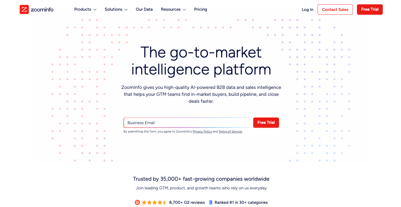 ZoomInfo duy trì vị trí của mình như tiêu chuẩn ngành cho khối lượng và độ sâu của dữ liệu liên hệ và doanh nghiệp. Điểm mạnh của nó nằm ở cơ sở dữ liệu khổng lồ, được cập nhật liên tục thông qua mô hình đóng góp cộng đồng độc quyền của riêng nó. Đây là nền tảng được lựa chọn cho các đội ngũ bán hàng cần phạm vi rộng trong thị trường Bắc Mỹ. Các công cụ thông tin bán hàng tích hợp của nền tảng, như tín hiệu nhu cầu và trí tuệ cuộc trò chuyện, khiến nó trở thành giải pháp toàn diện mạnh mẽ.